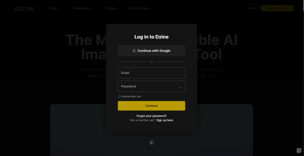 Step 1: Sign in to Dzine