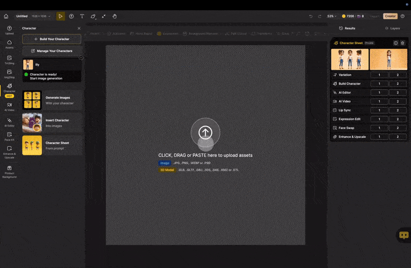 - Build professional-level character reference sheets (turnarounds) with one click.