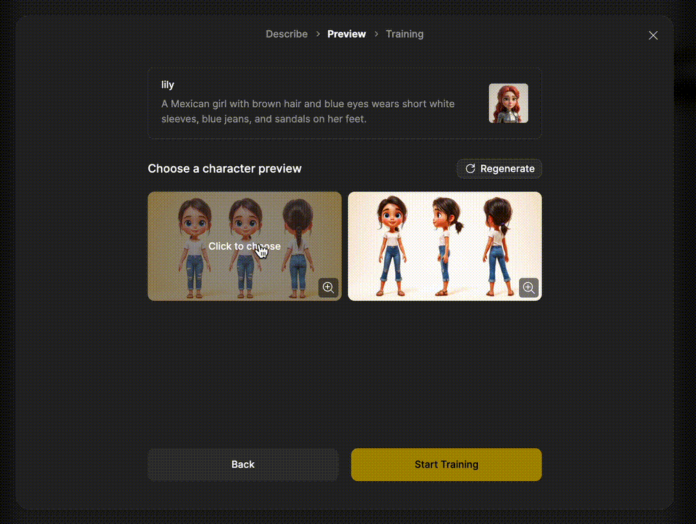 - You will receive a set of preview images. If you like one, check it and proceed to training.