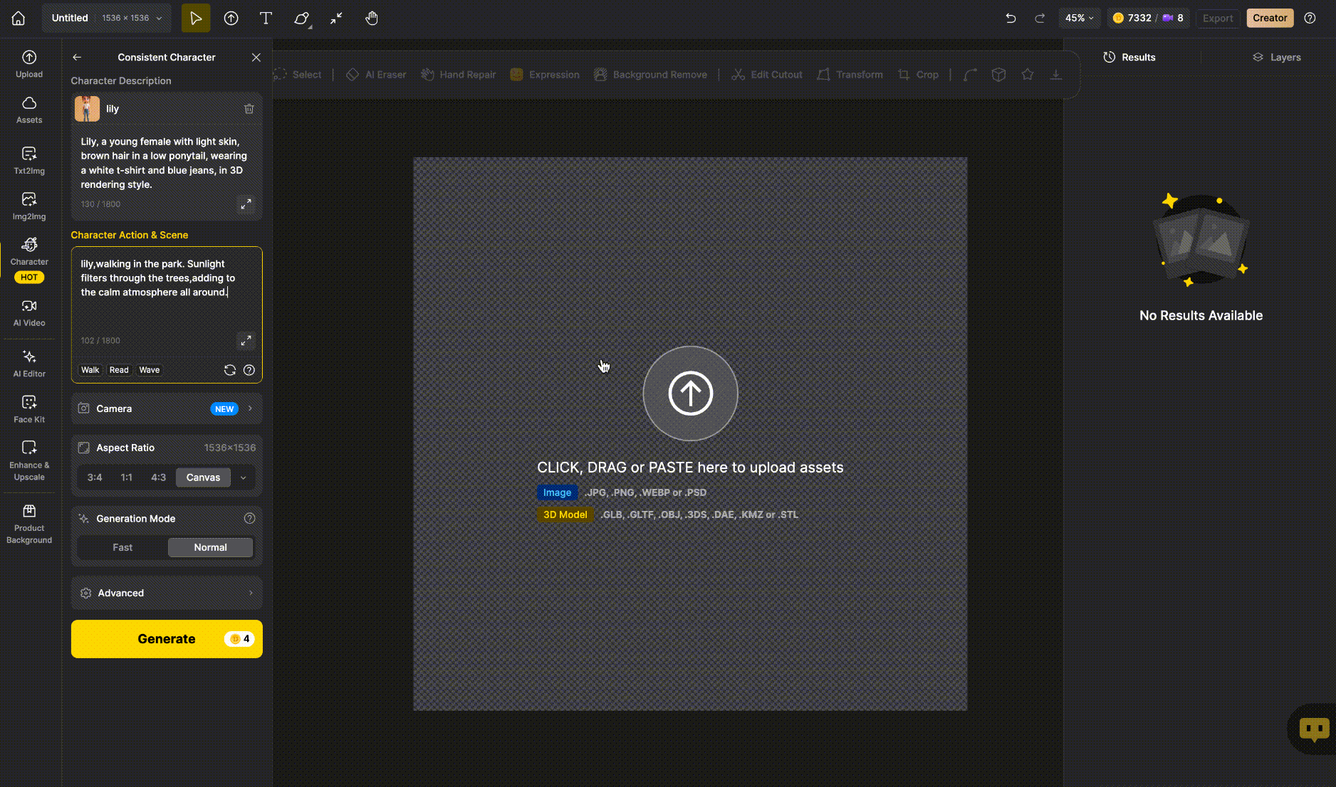 Welcome to our Consistent Character feature! This is a revolutionary AI image generation technology that allows you to: