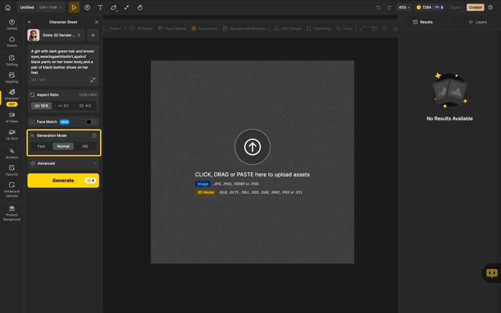 - Fast Mode: Quick generation with fewer credits (ideal for drafts).