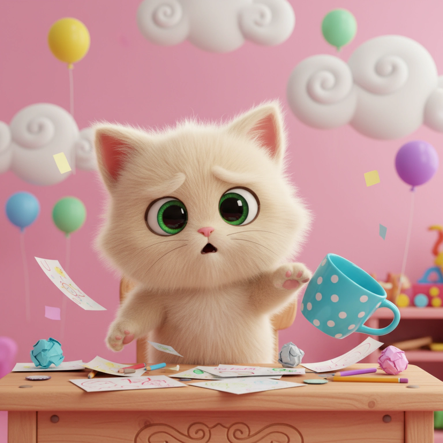 Tell us what you want. For example, "a Siamese cat playing with a ball in a garden" or "a fluffy kitten chasing a laser pointer".