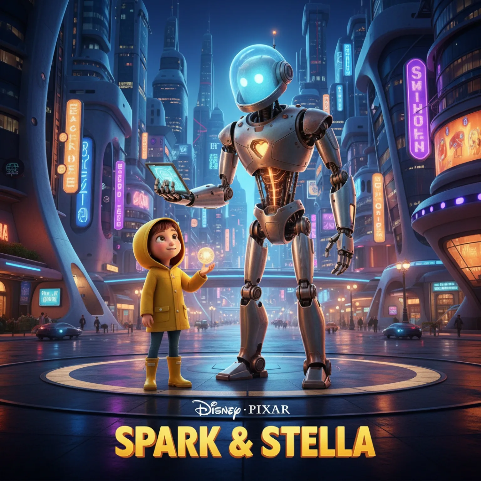 The best prompt is detailed and specific. Start with "Pixar movie poster of..." and then describe the main character, the setting, the emotion, and the movie title. For example: "Pixar movie poster of a sad, small robot lost in a vast desert, title 'The Last Spark'."
