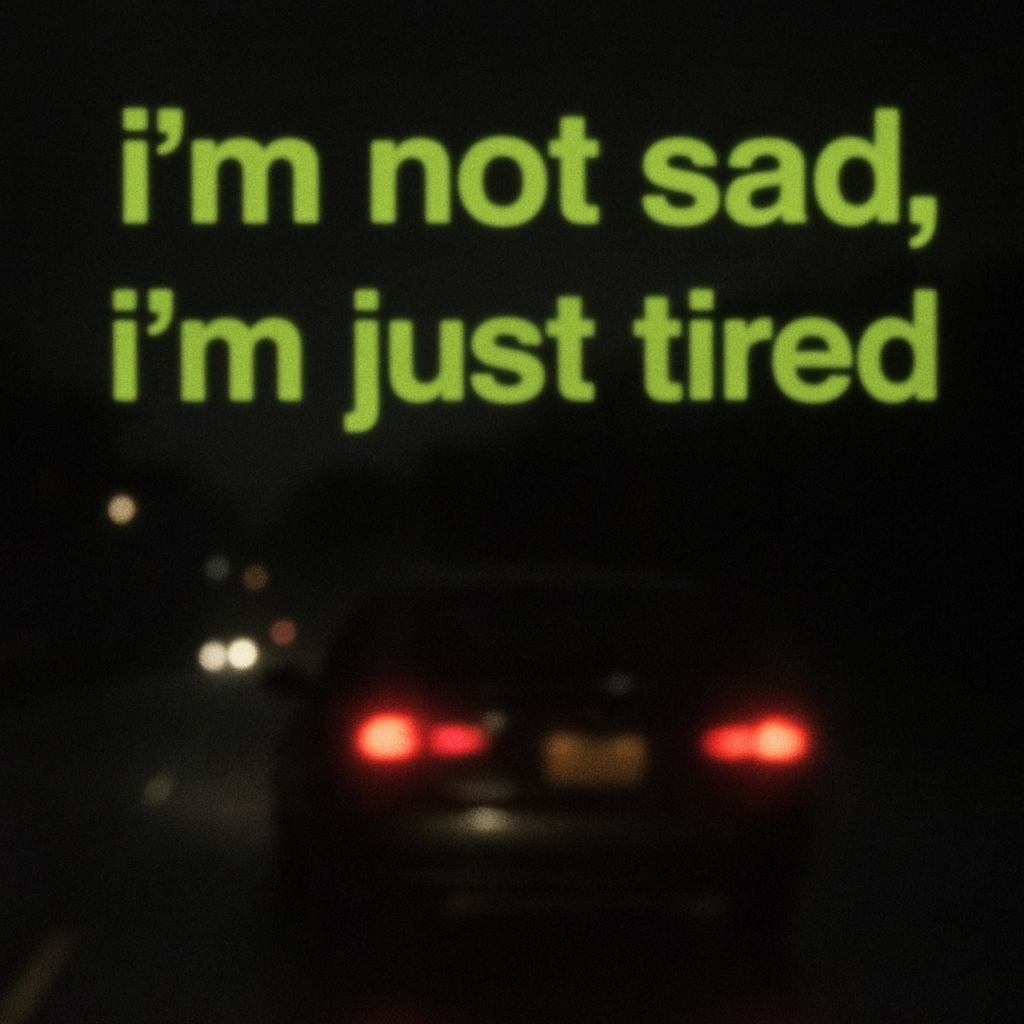 Input your text prompt, clearly describing the background image, the text you want to overlay, and any specific stylistic requirements like color or grain. For example: "A flash photo of a late-night street corner with the text 'i'm not going home' in lime green."