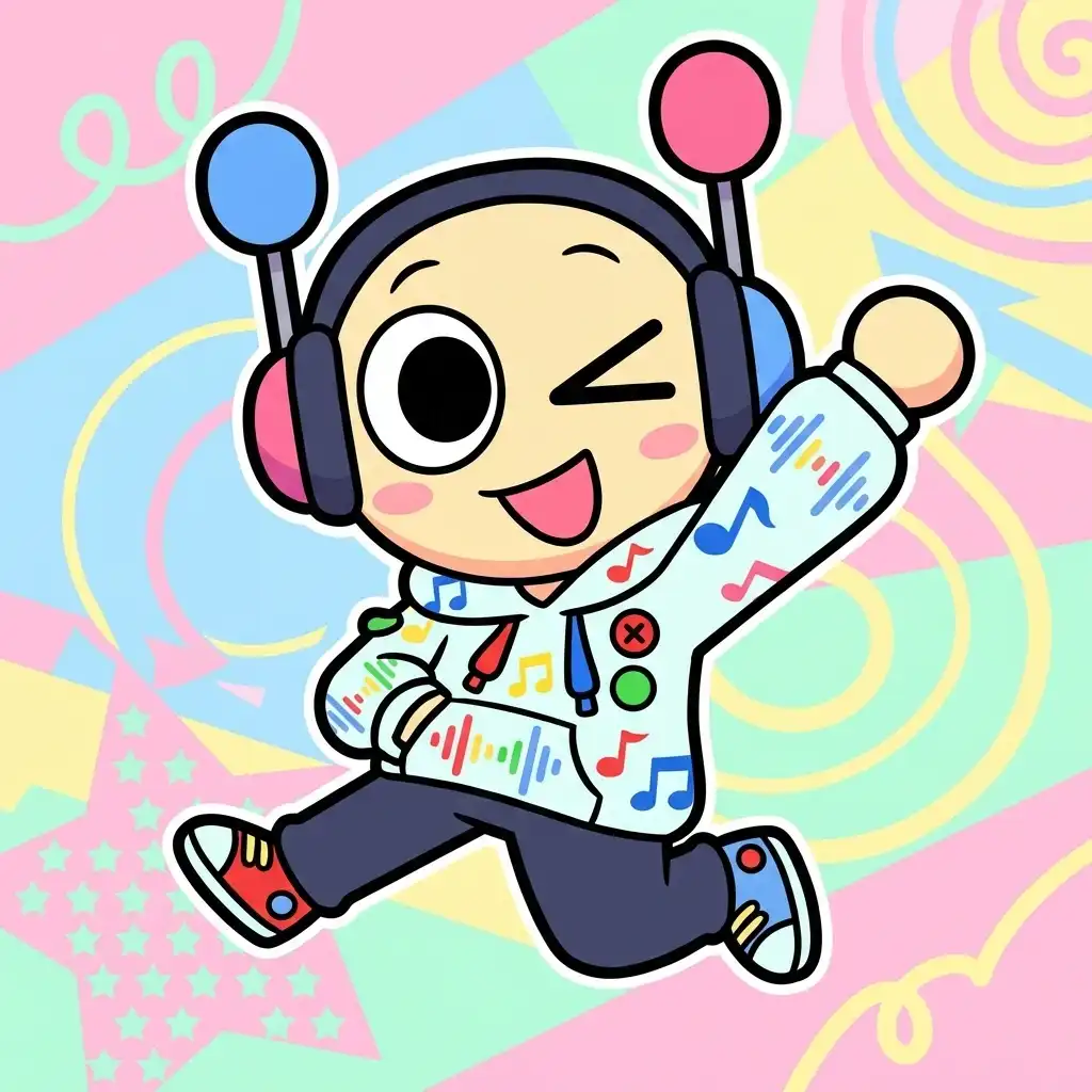 Include color preferences, personality traits, musical style, special features, and mood. More specific descriptions produce better results. For example: "cheerful yellow character with green accents, loves fast beats, has circular patterns, energetic personality." The AI interprets these details into cohesive character designs.