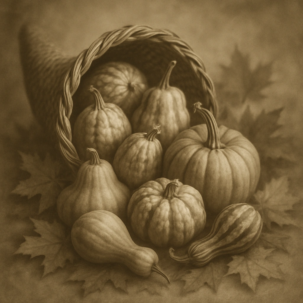Describe your ideal Thanksgiving scene in the text prompt box. Be specific about the subject, style, and mood—for example, "a golden retriever sitting at a Thanksgiving table wearing a pilgrim hat, oil painting style."